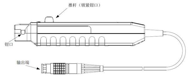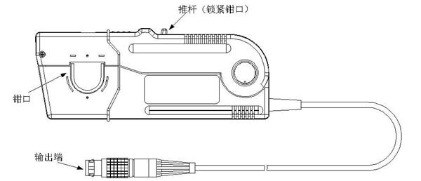 向后拉推桿,可打開鉗口;測量時,鎖緊鉗口,推桿向前推到位,確保 LOCK 狀態(tài),才能保證測量 精度。