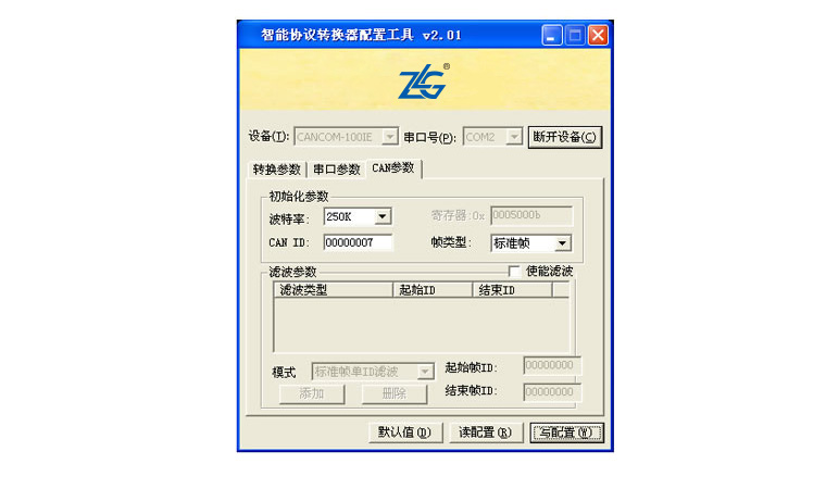 CAN參數(shù):配置CAN波特率、幀類型、幀過濾(選擇性接收)