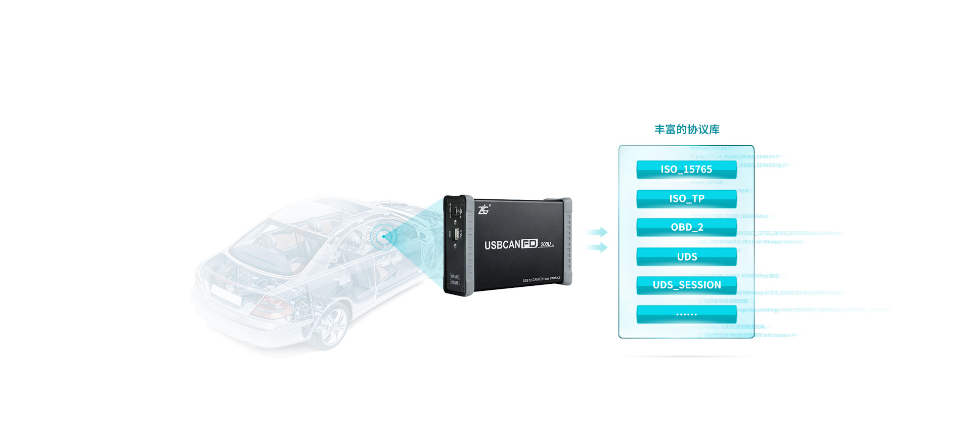 用戶可直接加載UDS/OBDII/15765等汽車電子專用協(xié)議二次開發(fā)庫(kù),協(xié)助完成零部件測(cè)試檢修。