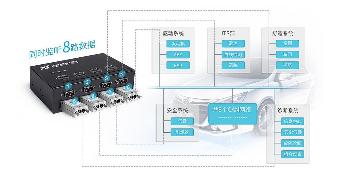 保護(hù)原有應(yīng)用層協(xié)議,可同時(shí)監(jiān)聽8路CAN總線數(shù)據(jù)