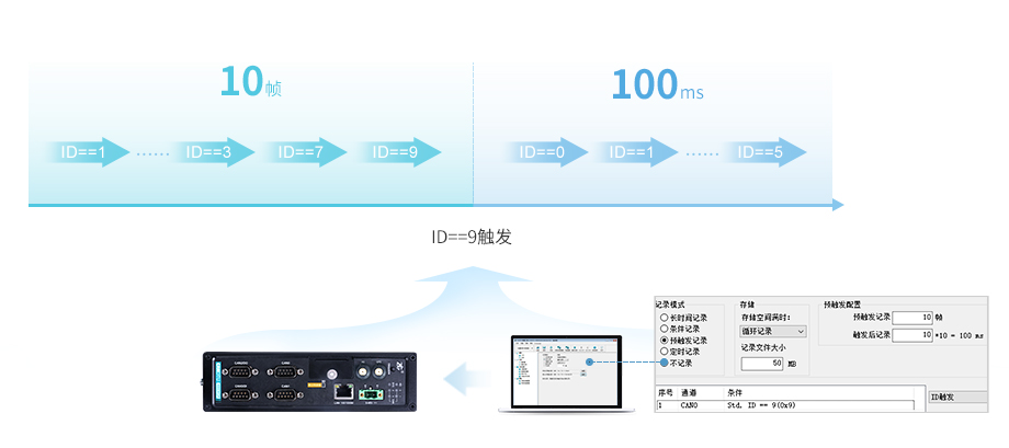 記錄報文支持全部存儲、條件存儲、預(yù)觸發(fā)存儲、定時存儲(可設(shè)置定時時間);