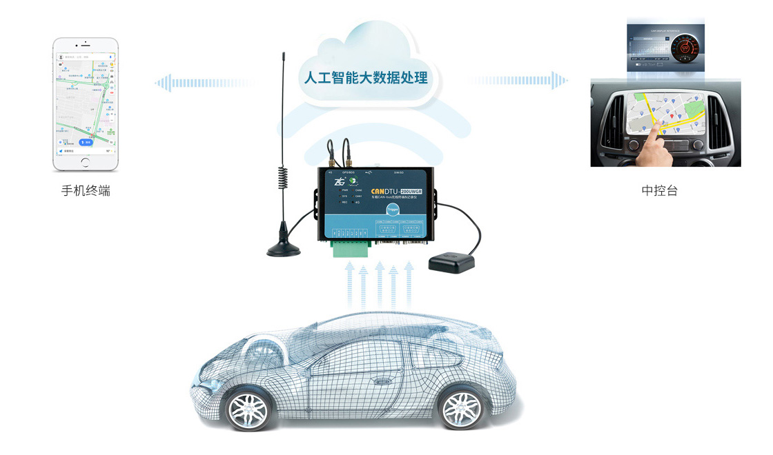 CANDTU-200UWGR可以實(shí)時(shí)采集的CAN總線數(shù)據(jù)和定位信息,通過4G通信實(shí)時(shí)上傳到指定的云端服務(wù)器上。用戶可通過手機(jī)等終端登錄云,實(shí)時(shí)查看汽車定位、儀表、油溫油壓情況,實(shí)現(xiàn)用戶終端的人工智能大數(shù)據(jù)處理。