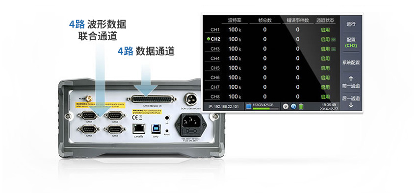 2通道CAN模擬與數(shù)字信號混合記錄通道(可同步存儲CAN報文與對應(yīng)波形,采樣率100MSa/s);