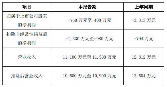 3.預(yù)計(jì) 2023 年年度歸屬于母公司所有者的扣除非經(jīng)常性損益后的凈利潤(rùn)-11,100 萬(wàn)元到-9,500 萬(wàn)元。