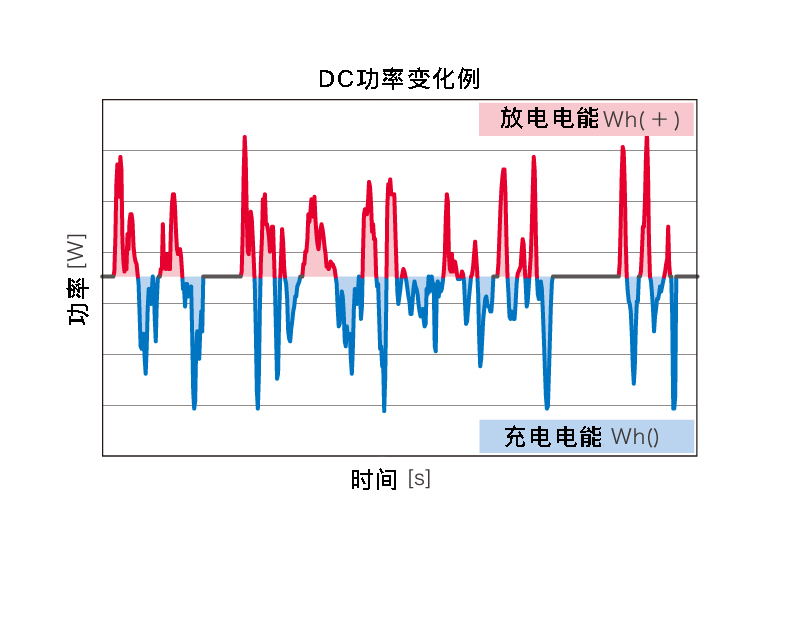 DC的累積測量是以每500kS/s的采樣率分極性進行充電功率和放電功率的累積,并分別測量累積時的正方向電能、負方向電能、和正負方向電能之和。即便是電池快速反復進行充放電時,也能準確的測量充電量和放電量的情況。