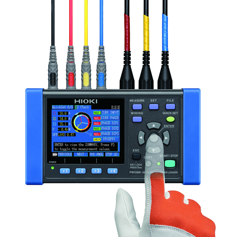 操作簡單的小型鉗形功率計!節(jié)能活動從把握現(xiàn)狀開始?!?適用于單相~三相4線,最大對應(yīng)380V供電線● 最大測試電壓780V,顯示范圍高達1000V● 單相2線的話可以3電路同時測量(同一電源系統(tǒng)時)● 最小可測50.000mA量程,也可測量泄漏電流(需要選件中的傳感器)● 使用SD卡可長時間保存● 設(shè)置導(dǎo)航功能有助于準(zhǔn)確接線(接線狀態(tài)實