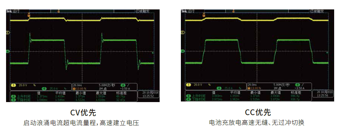 IT6000B系列延續(xù)ITECH提出的CC/CV 優(yōu)先權(quán)概念,持續(xù)幫助用戶解決長期測試應(yīng)用中的各種嚴(yán)苛問題,使需求電源高速或者無過沖等應(yīng)用,變得更加靈活。用戶可以選擇CC/CV 環(huán)路的響應(yīng)速度以及環(huán)路工作模式,來決定輸出是電壓高速模式還是電流無過沖模式,適用于諸如大功率集成電路的測試、充放電測試和汽車電子的電源瞬變仿真和表征等。