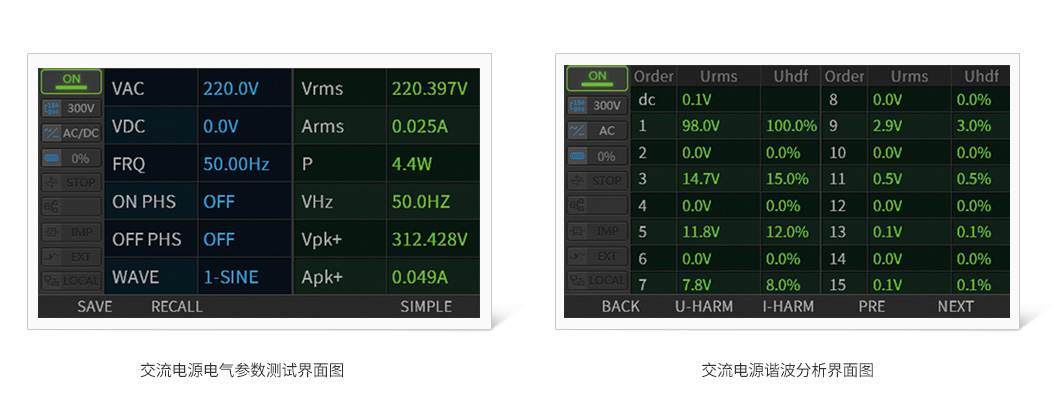 高性能可編程交流電源集成功率計(jì),實(shí)現(xiàn)電氣參數(shù)的精準(zhǔn)量測(cè),比如電壓、電流、頻率、有功功率、視在功率、諧波等,同時(shí)還具備達(dá)99次諧波分析。集成功率計(jì)與電源共用內(nèi)部傳感器與線路,較常規(guī)電氣測(cè)試,可大大節(jié)省測(cè)試設(shè)備成本和接線時(shí)間。