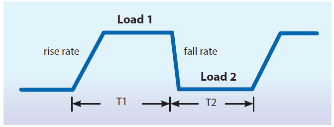6310A提供高速的可編程動態(tài)負(fù)載特性仿真功能,下圖可說明6310A的可編程參數(shù):