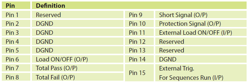 數(shù)字I/O控制接口在自動測試系統(tǒng)的應(yīng)用環(huán)境中,可藉由I/O信號進(jìn)行簡易操作與判定。例如:透過I/O信號可啟動負(fù)載、啟動OCP測試、啟動時序測試、取得負(fù)載狀態(tài)信號等。